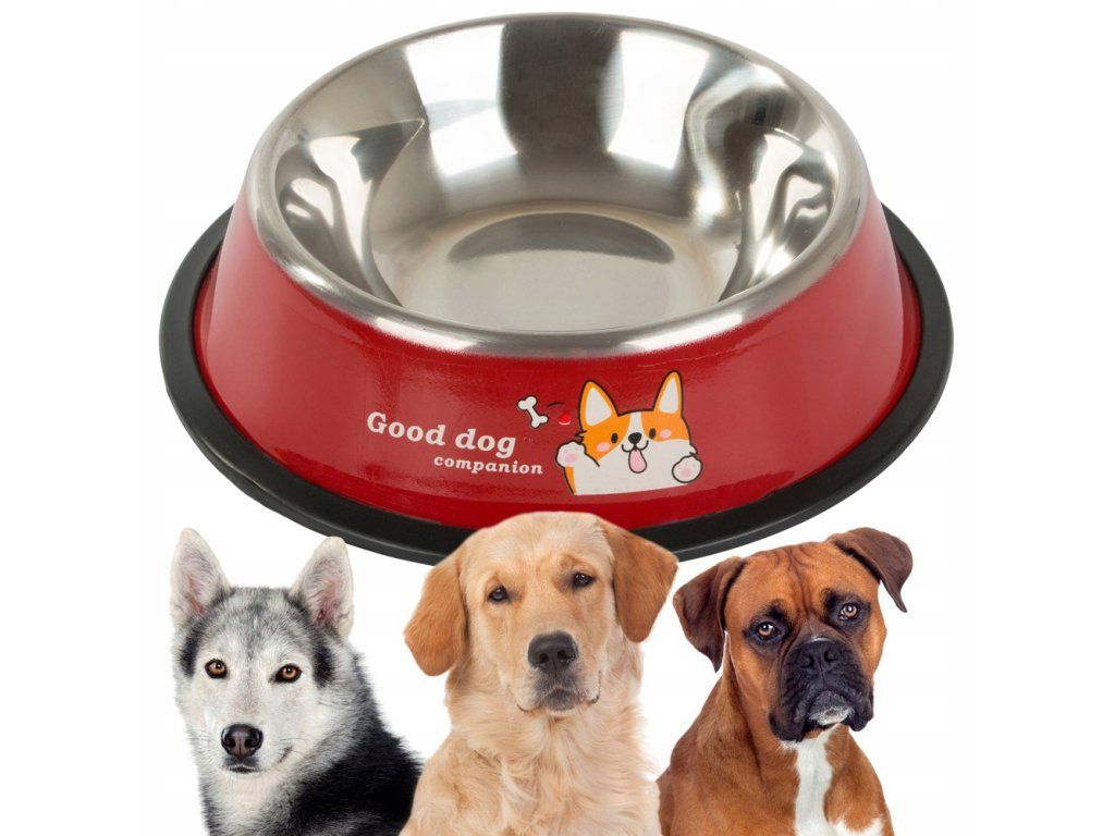 Je vyrobena z nerezové oceli a má protiskluzovou gumovou podložku, která zabraňuje posouvání misky s jídlem.