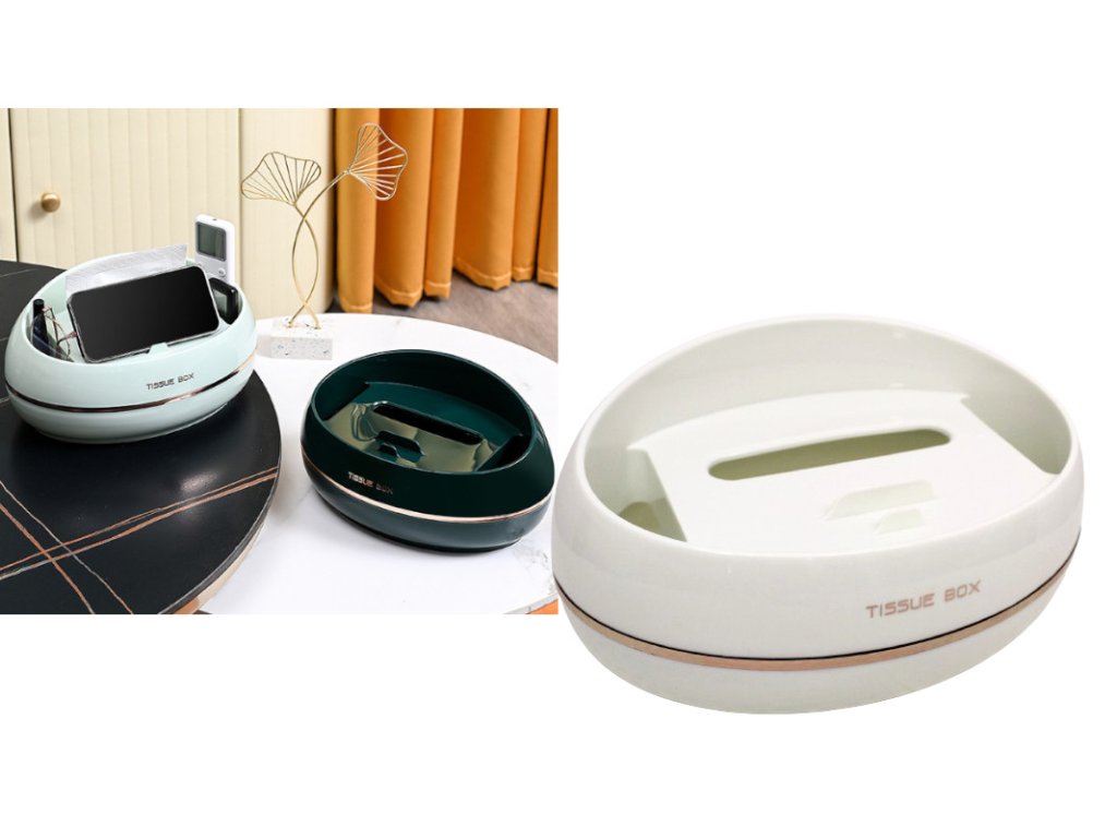 Krabice na kapesníky, organizér na dálkové ovladače s podstavcem na telefon 26,5x19,5x13 cm BÍLÁ