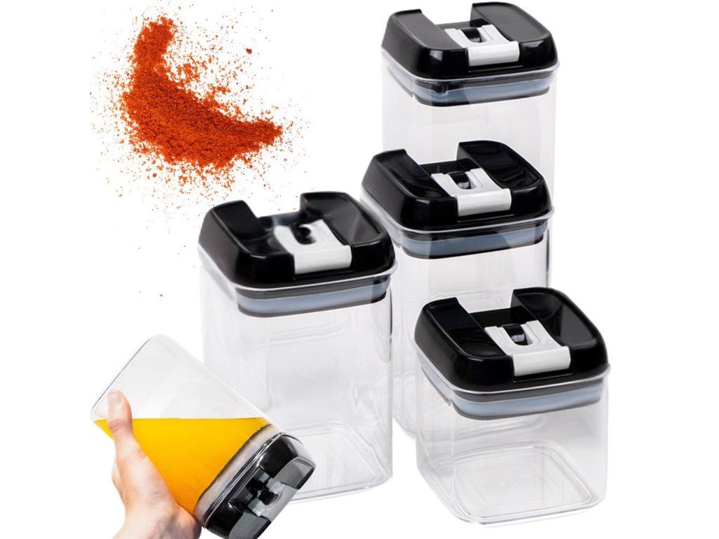 Sada kuchyňských nádob je spolehlivým řešením pro skladování potravin v domácnosti. Díky těsným víčkům s těsněním a pevnými západkami si produkty déle zachovávají čerstvost. Nádoby jsou ideální pro skladování těstovin, rýže, cereálií, kávy, čaje, koření, sladkostí nebo sušenek. Průhledné stěny umožňují rychle zkontrolovat obsah, aniž byste museli nádobu otevírat.