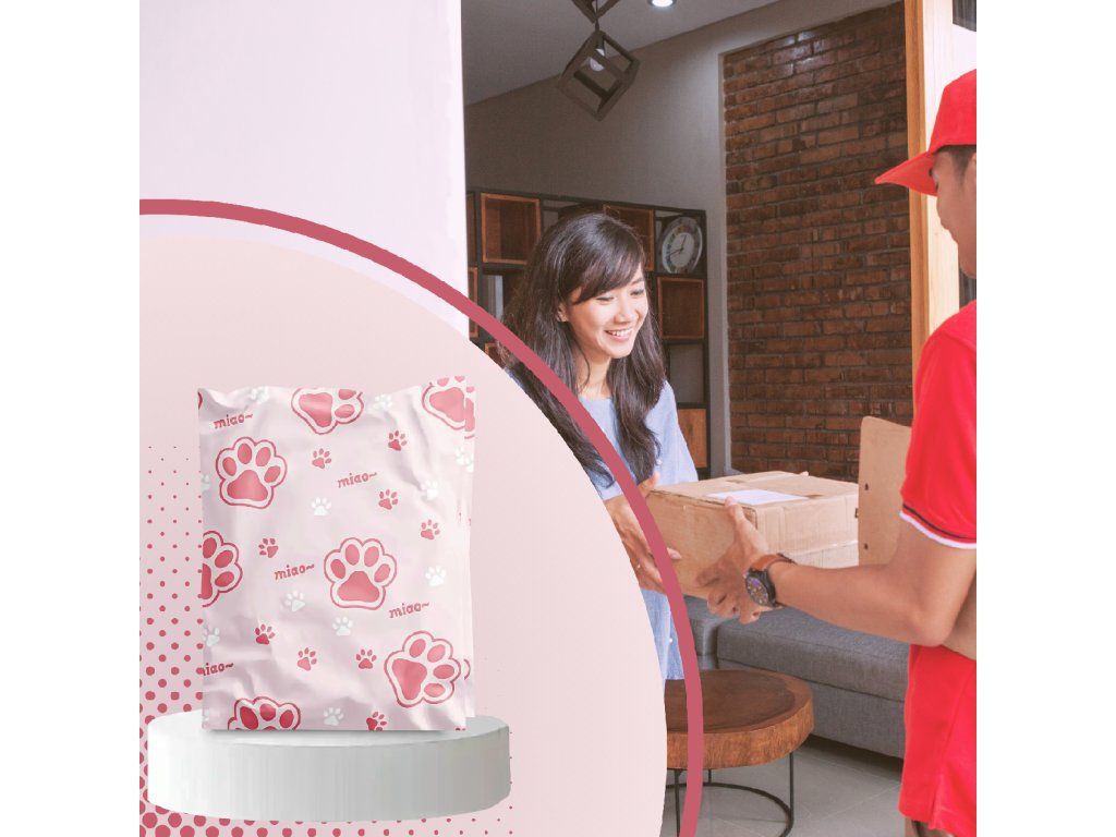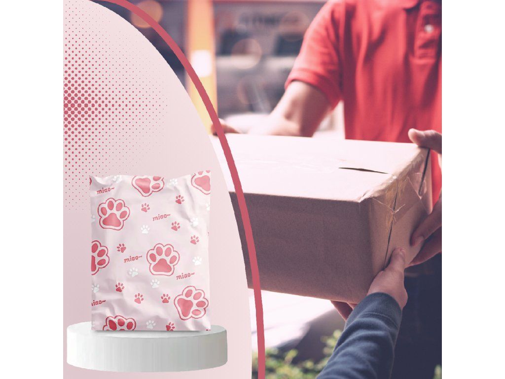 KURÝRNÍ FÓLIE RŮŽOVÉ S MOTIVEM KOČIČÍ TÁPKY 255 x 370 mm 50 ks