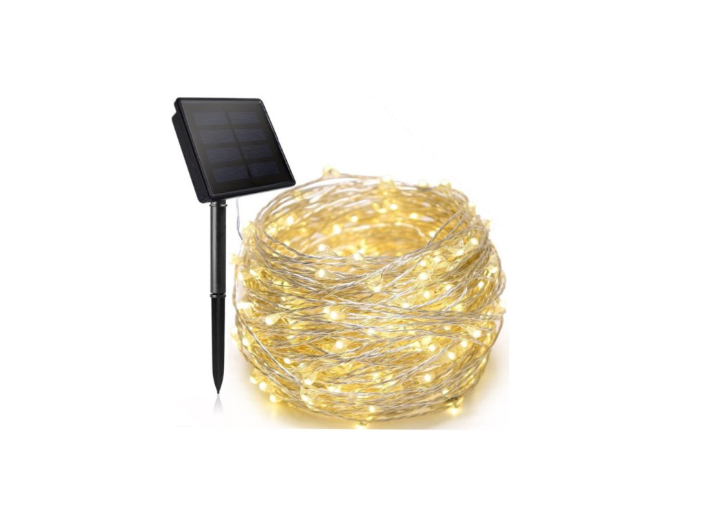 LED SVĚTLO, solární 8 funkcí , 100 světel (teplá bílá) 12m
