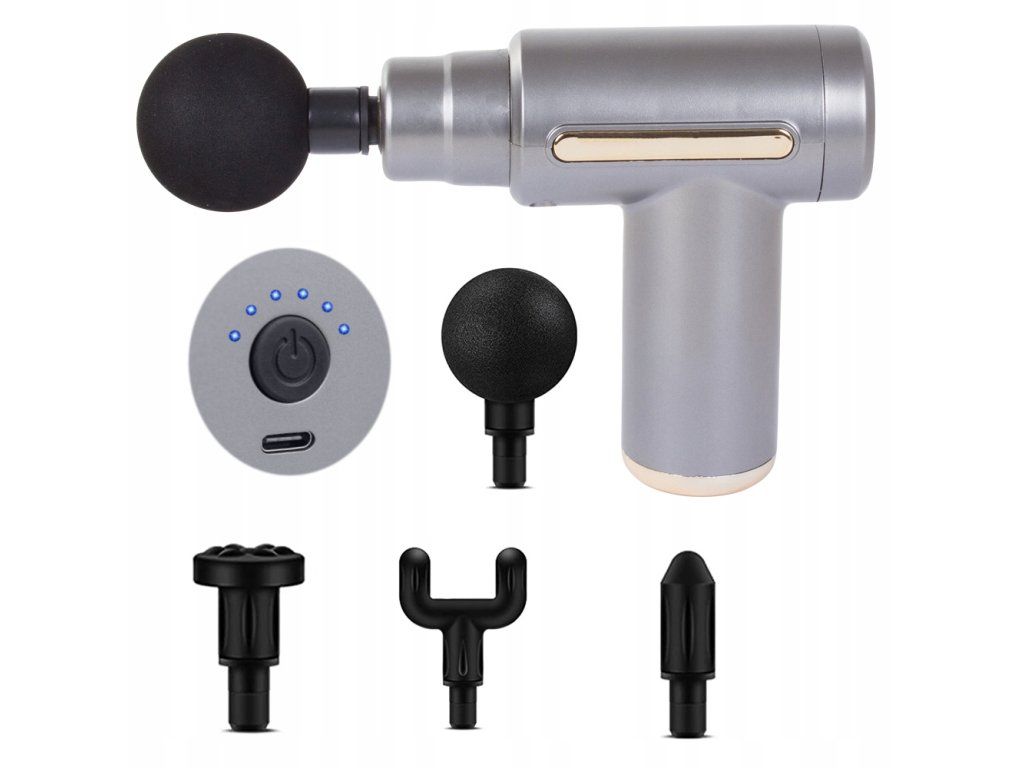 Masážní přístroj byl navržen v ergonomickém tvaru pistole, takže perfektně padne do ruky. Obsahuje 4 různé hroty , z nichž každý je určen pro jinou svalovou partii.