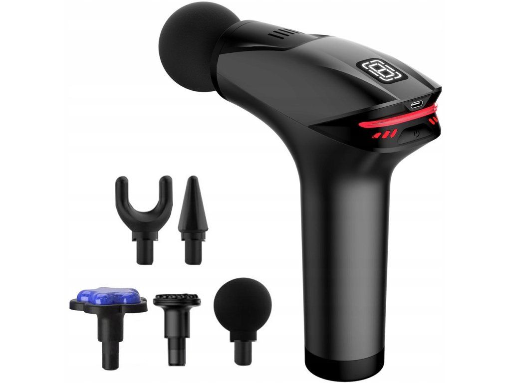 Masážní pistole nejen na záda se 5 nástavci, výkonná, černá