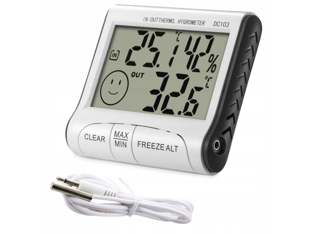 Teploměr sloužící k měření teploty a vlhkosti vzduchu . Můžeme jej umístit kamkoli, kde chceme tyto ukazatele měřit. Je ideální pro domácnosti, kanceláře nebo průmyslové provozy .