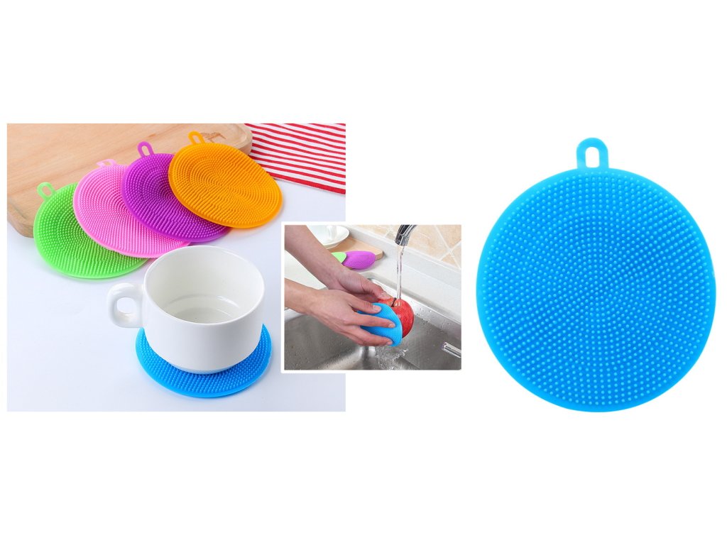 Myčka, silikonová houbička kulatá, barva ŽLUTÁ, 10 cm, tloušťka 7 mm