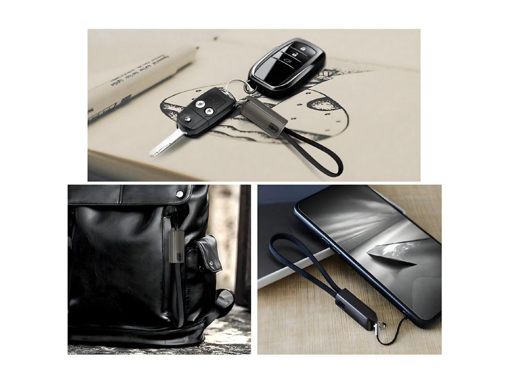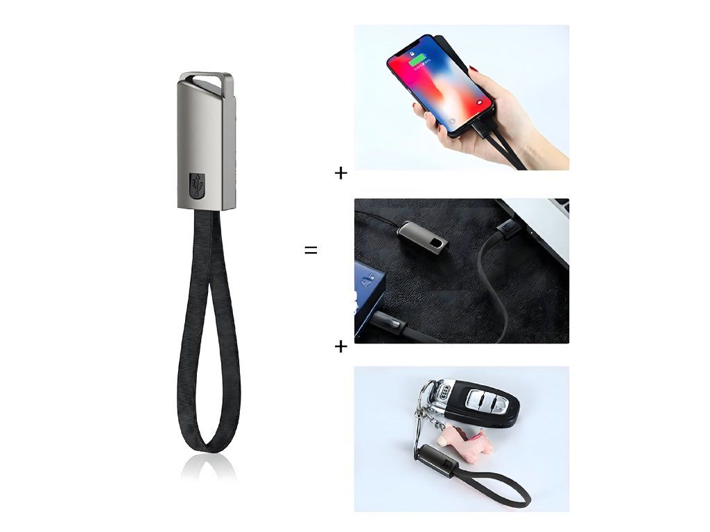 Ano! Kabel slouží také jako stylový a funkční přívěsek/klíčenka.