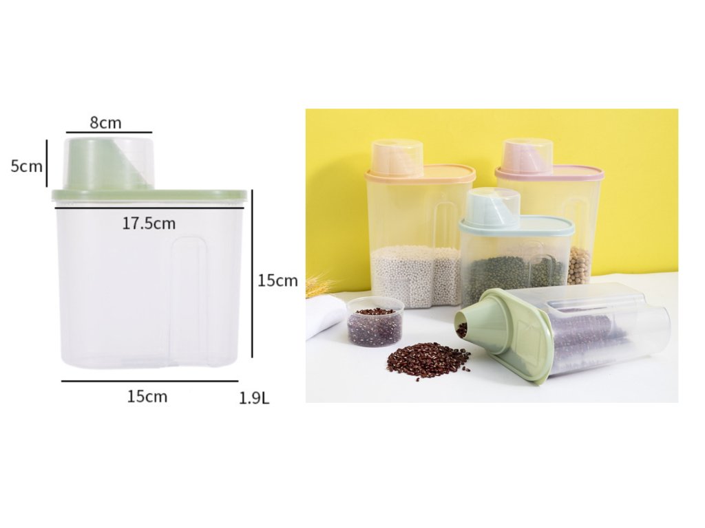 Nádoba s víkem a odměrkou pro skladování, zelená PLASTIK 15x17x15 cm