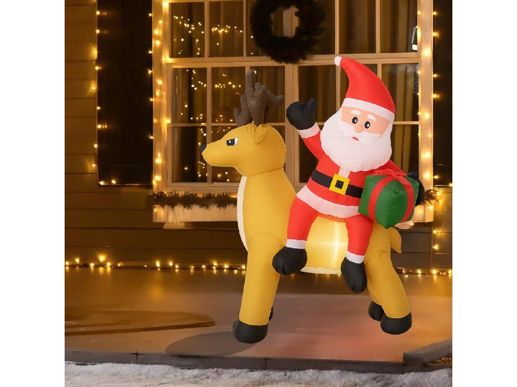 Nafukovací Santa Claus s sobem 1,5 m s LED osvětlením je ideální způsob, jak vytvořit vánoční atmosféru – efektní, snadno ovladatelný a odolný vůči zimním podmínkám ✨