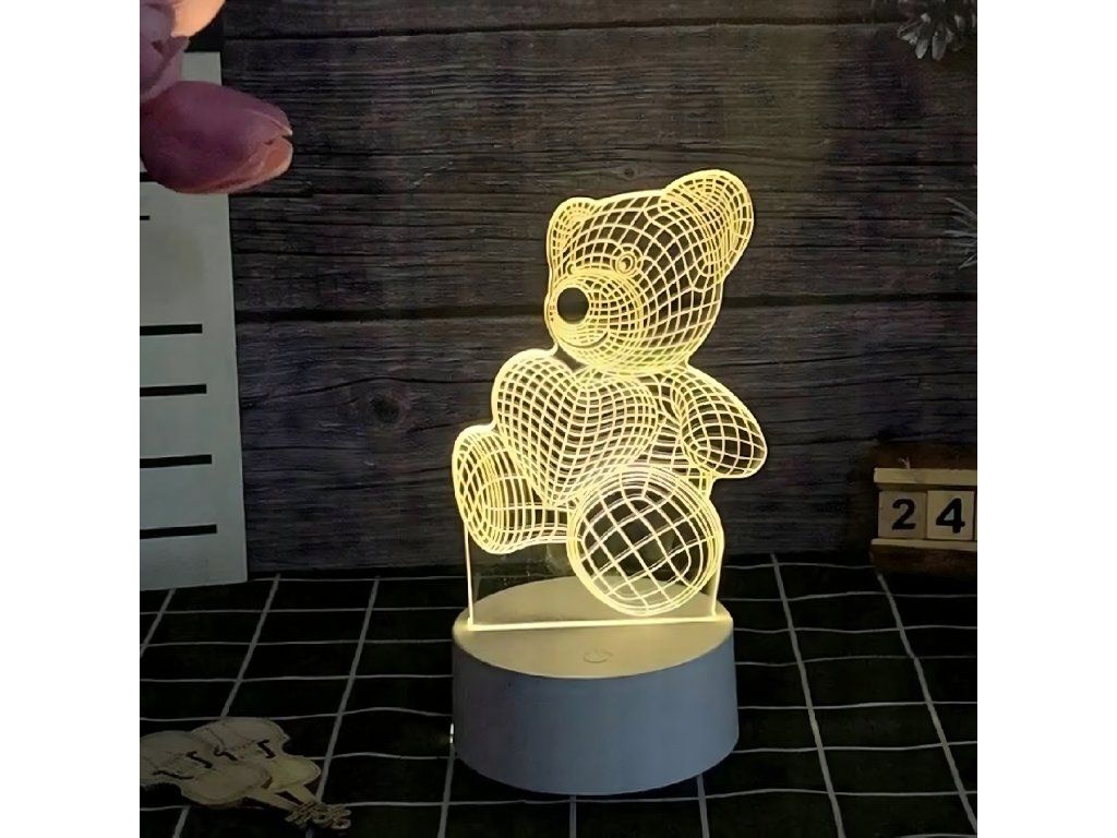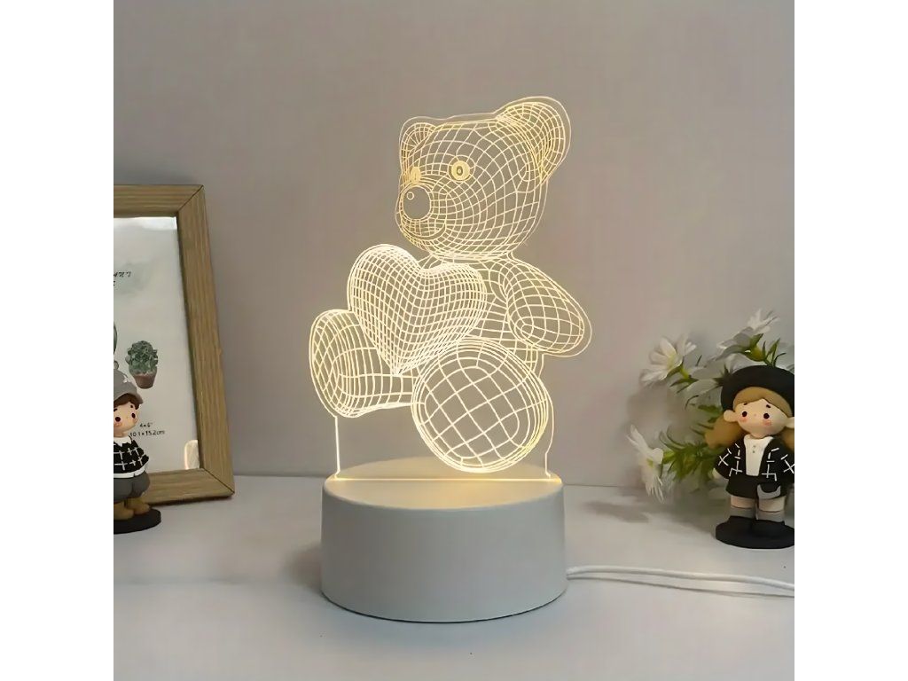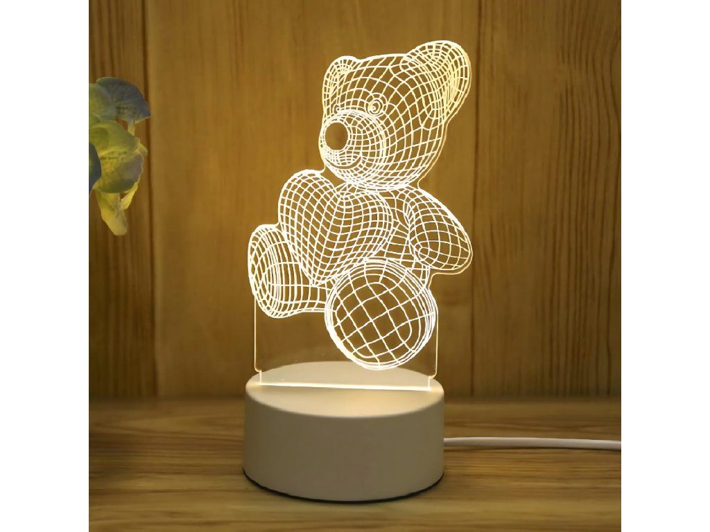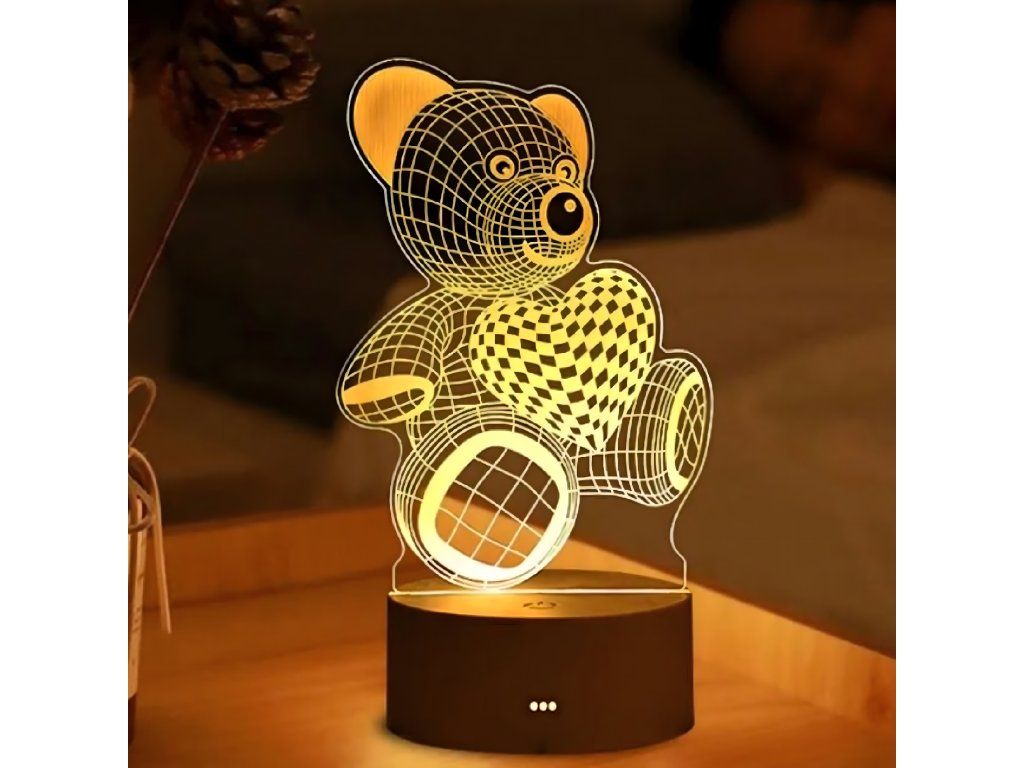 Noční lampička 3D Illusion s medvídkem jako dárek do dětské ložnice, stolní, USB