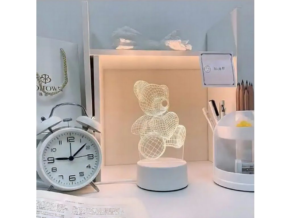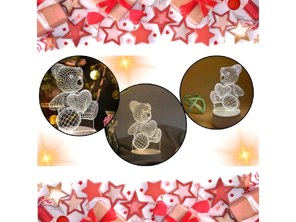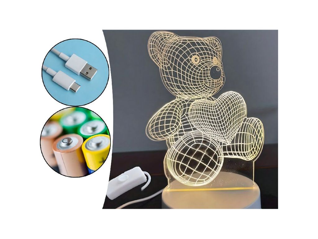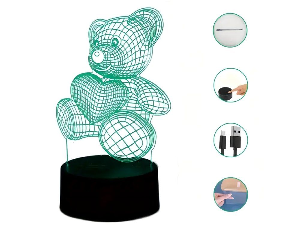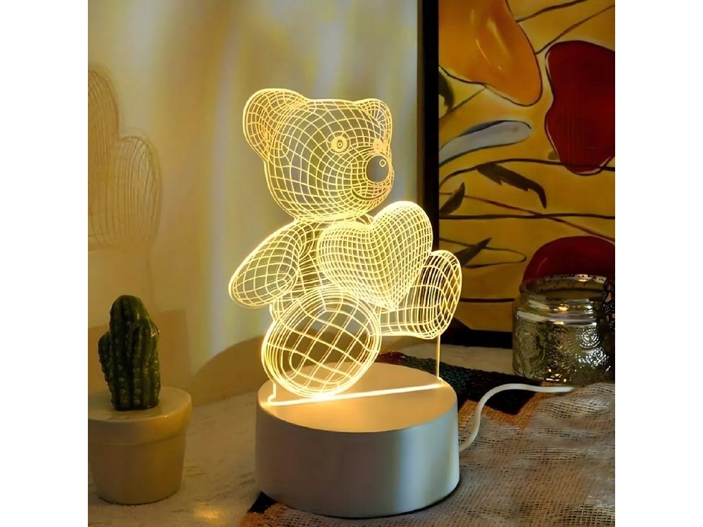 Noční lampička 3D Illusion s medvídkem jako dárek do dětské ložnice, stolní, USB
