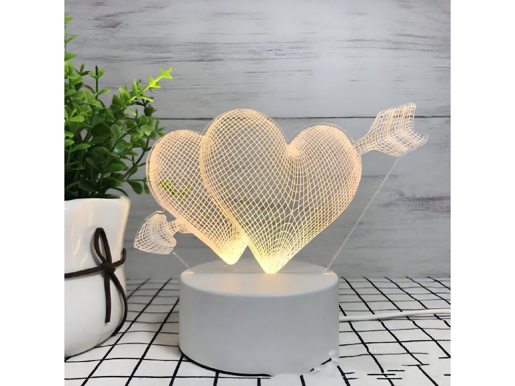 ❤️️NOČNÍ LAMPKA LOVE SRDÍČKA 3D ILLUSION DO DĚTSKÉ LOŽNICE, STOLNÍ, USB ❤️️