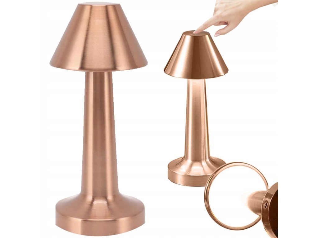 LED stolní lampa dotyková, bezdrátová, měděná