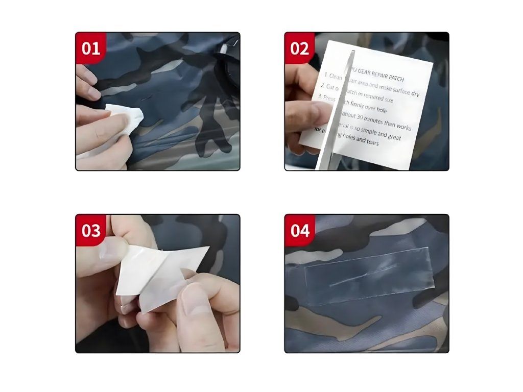 Rychlá a snadná oprava – samolepicí záplaty připravené k použití, které nevyžadují další lepidlo.