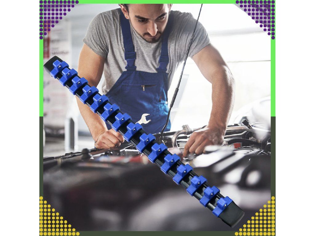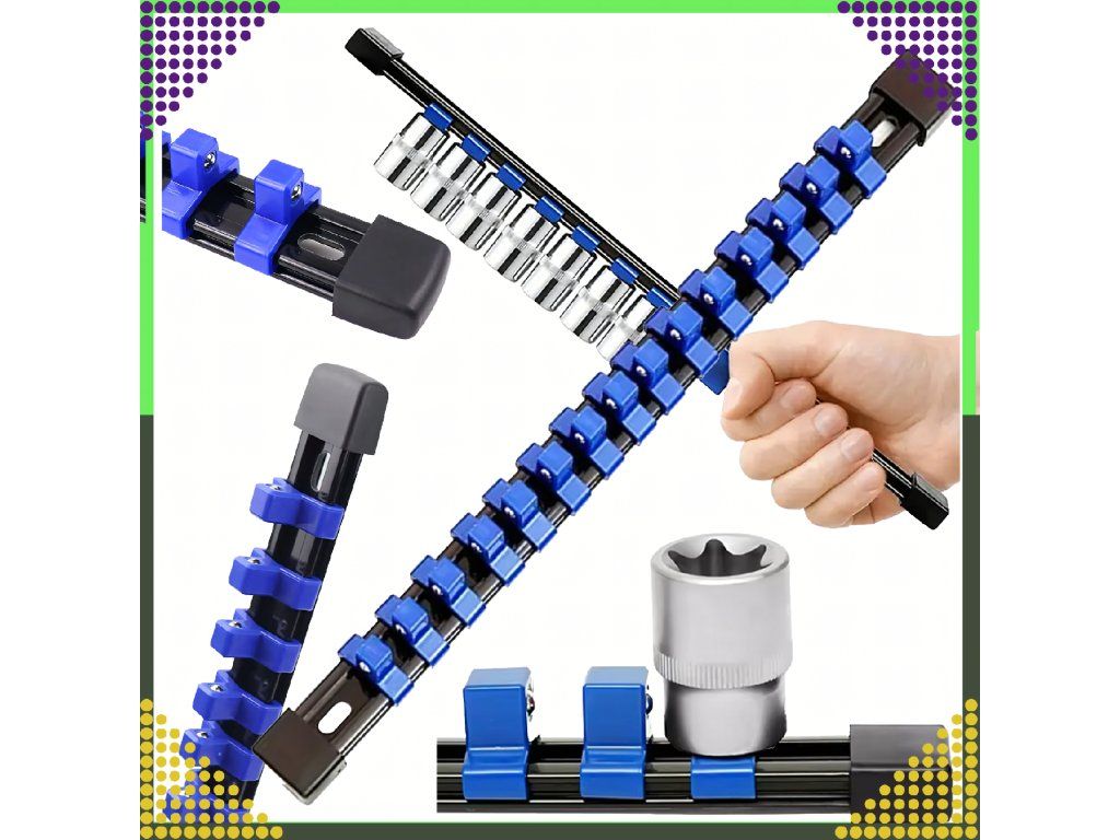 ⚙️️Organizér s lištou, sponami a úchyty na nástrčné klíče 3/8" s 15 místy ⚙️️