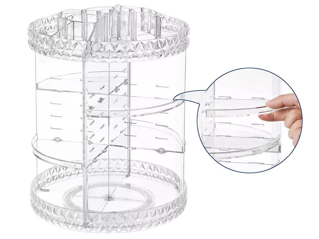 Otočný o 360 stupňů pro snadný přístup ke kosmetice. Má 7 úrovní , které můžeme libovolně měnit v závislosti na našich potřebách. Organizér vám pomůže ušetřit místo a uspořádat vaše kosmetické doplňky. Snadno se čistí, ideální jako dárek.