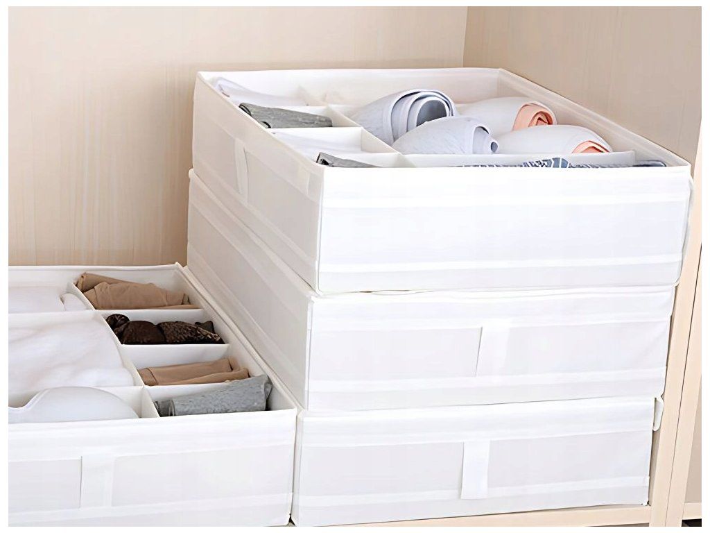 Díky přihrádkám v organizéru má každá položka své vlastní místo, což usnadňuje rychlé nalezení potřebného oblečení. Ideální pro použití v zásuvkách, policích nebo skříních pro lepší organizaci a pořádek.