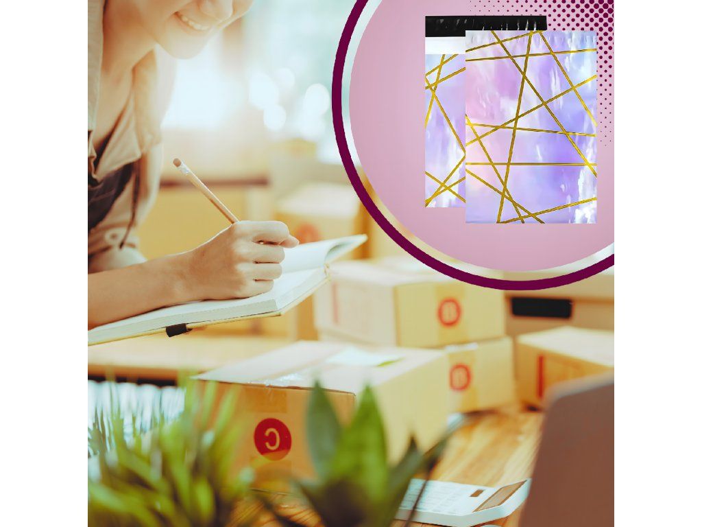 Zajistěte bezpečnost svých zásilek s elegantními fialovo-zlatými fóliovými obaly! ✨
