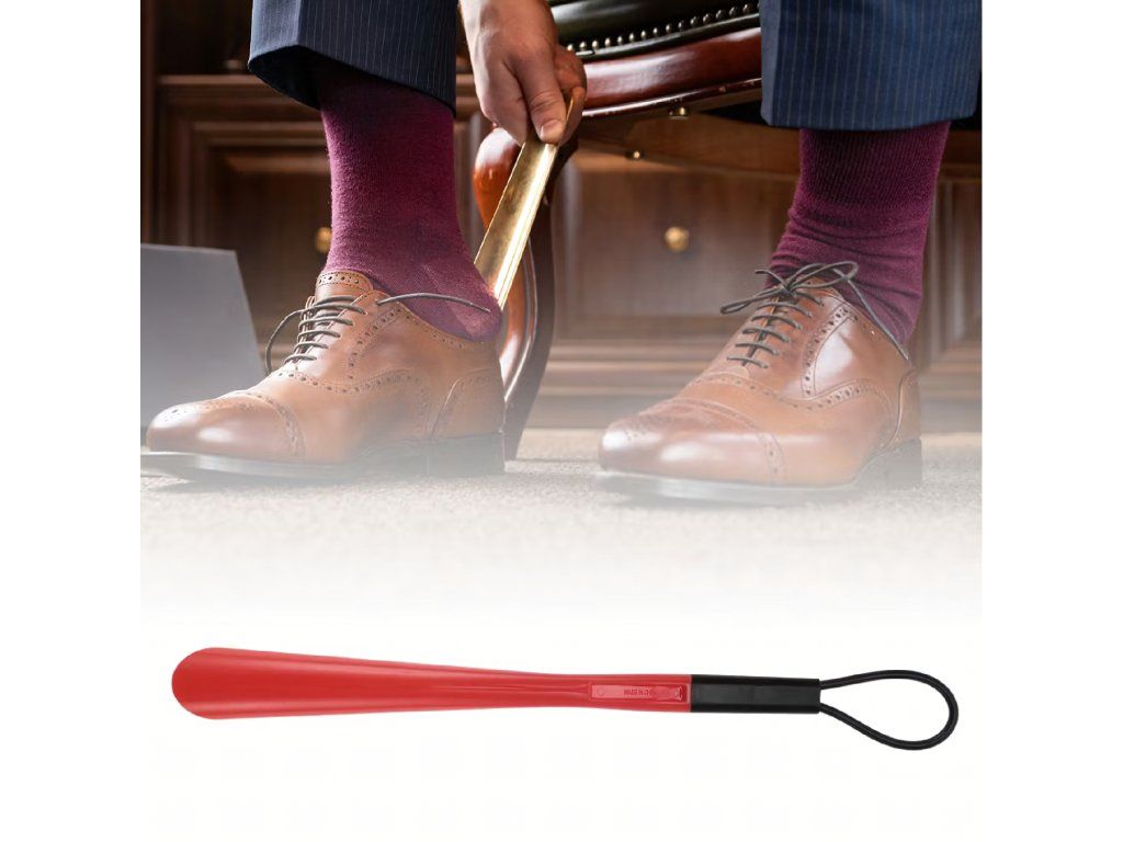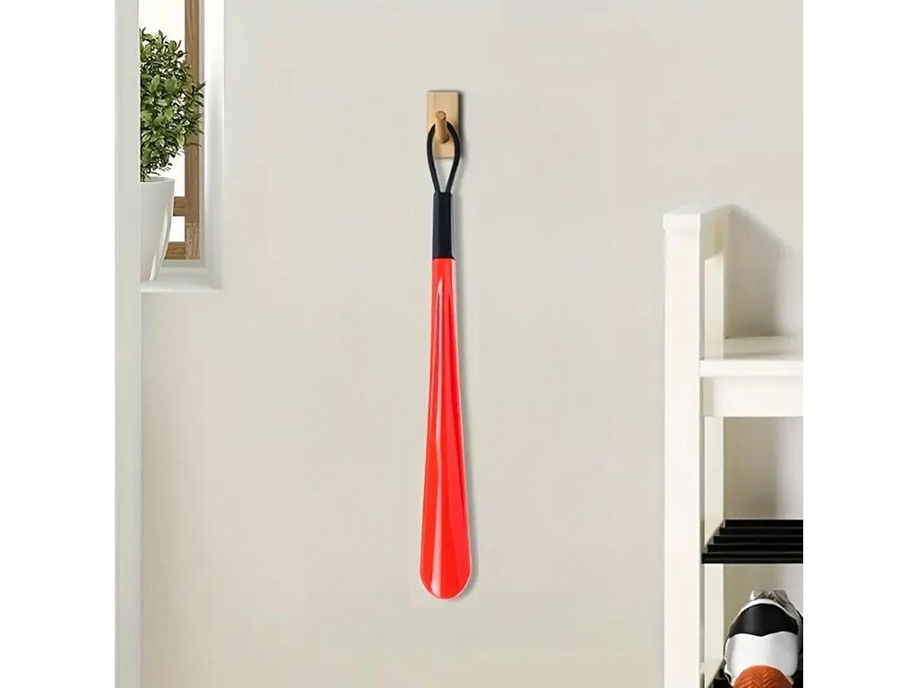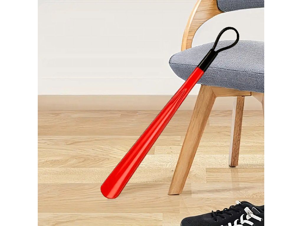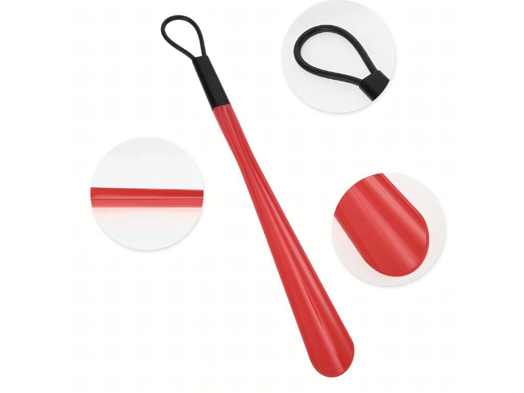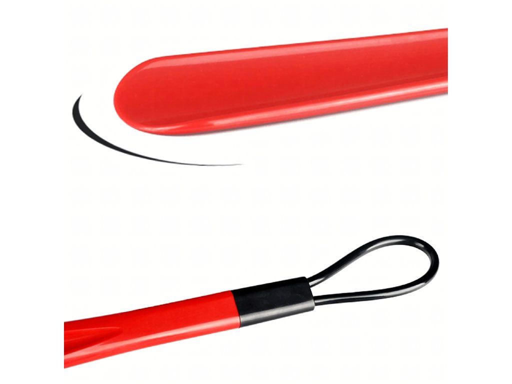 Plastová odolná lžíce na boty, červená, délka 48 cm, s háčkem