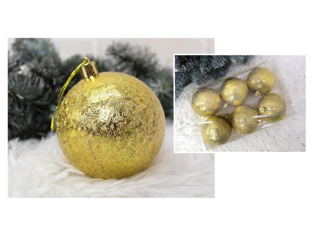 Plastové koule s povrchem jako po úderu kladivem, 6,5 cm – sada 6 ks, ZLATÉ