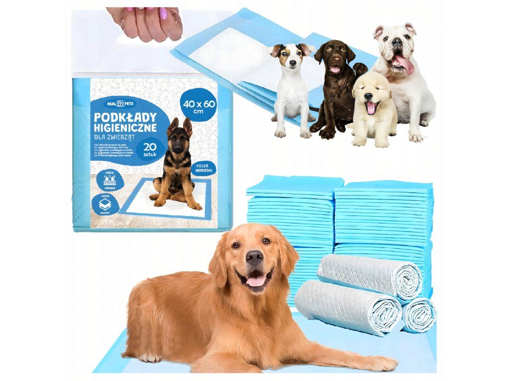 Podložky Hygienické podložky pro psy k výcviku na záchod XL 40x60cm Silné 20 ks MODRÉ