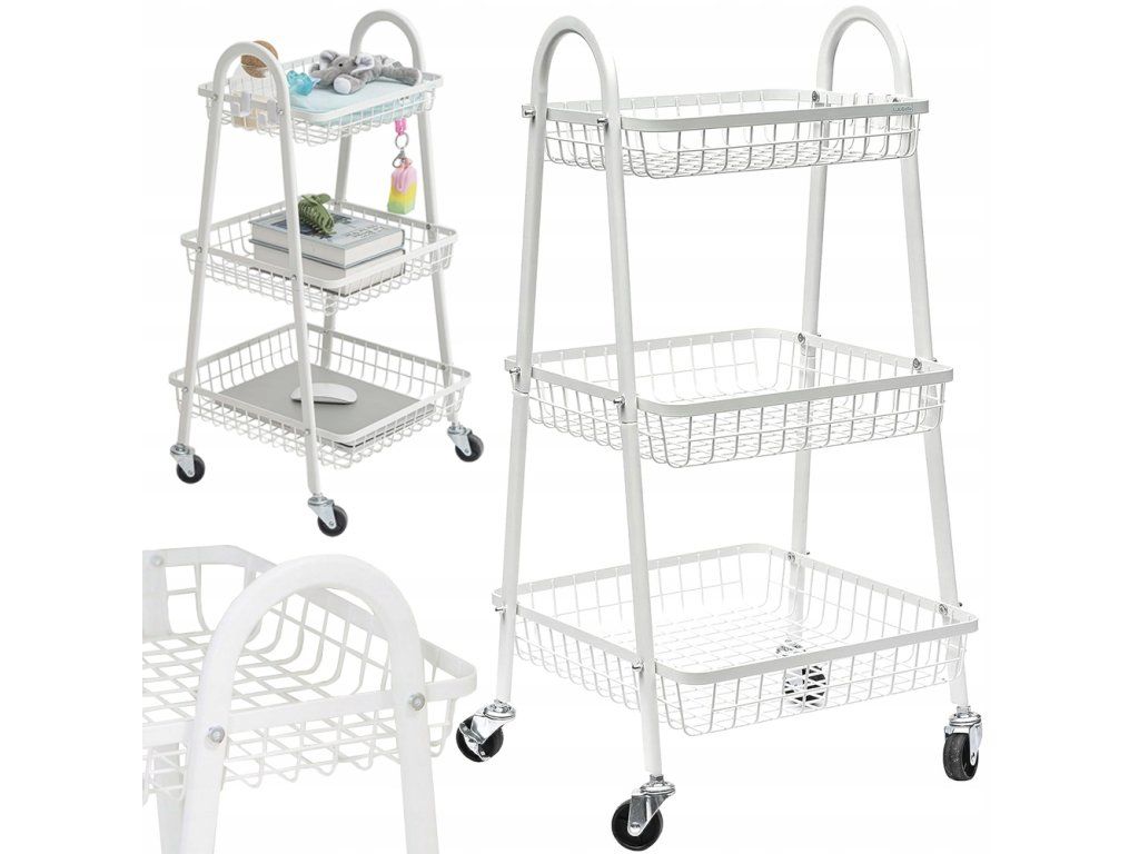 Kovová police na kolečkách je praktickým a elegantním řešením pro organizaci prostoru v koupelně, kuchyni, obývacím pokoji, dětském pokoji, kanceláři nebo třeba kosmetickém salonu. díky třem objemným úrovním poskytuje dostatek úložného prostoru pro ručníky, kosmetiku, čisticí prostředky, knihy nebo kuchyňské doplňky. Díky univerzálnímu černému barevnému provedení se regál dokonale přizpůsobí různým stylům interiéru.