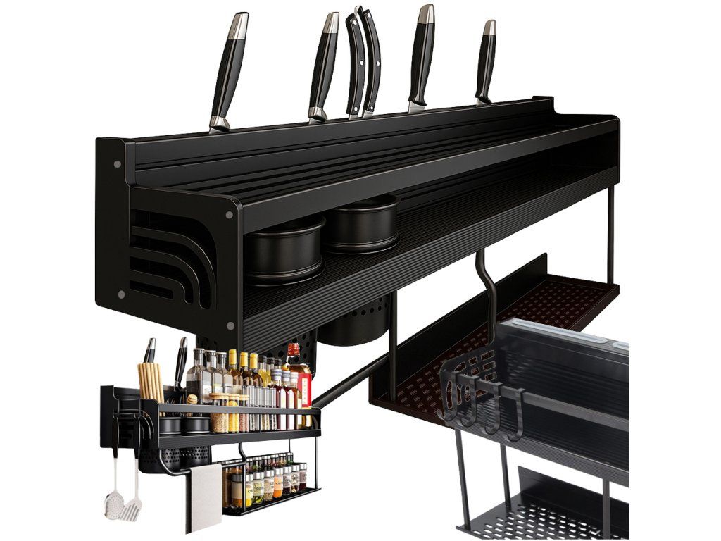 Tato robustní nástěnná police do kuchyně je ideálním řešením pro ty, kteří ocení pořádek a funkčnost. Díky ní najdou všechny nezbytné doplňky – koření, příbory, nože nebo čisticí prostředky – své místo a pracovní deska zůstane čistá a uklizená. Organizér je vyroben z odolného práškově lakovaného kovu, který zaručuje odolnost proti vlhkosti a korozi a zároveň moderní, elegantní vzhled, který se hodí do každé kuchyně.