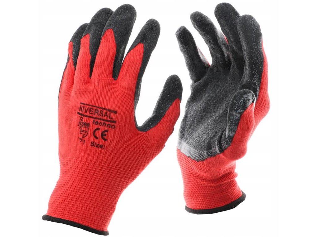 Pracovní rukavice POLIESTER červené + LATEX černé velikost 10 - 1 pár