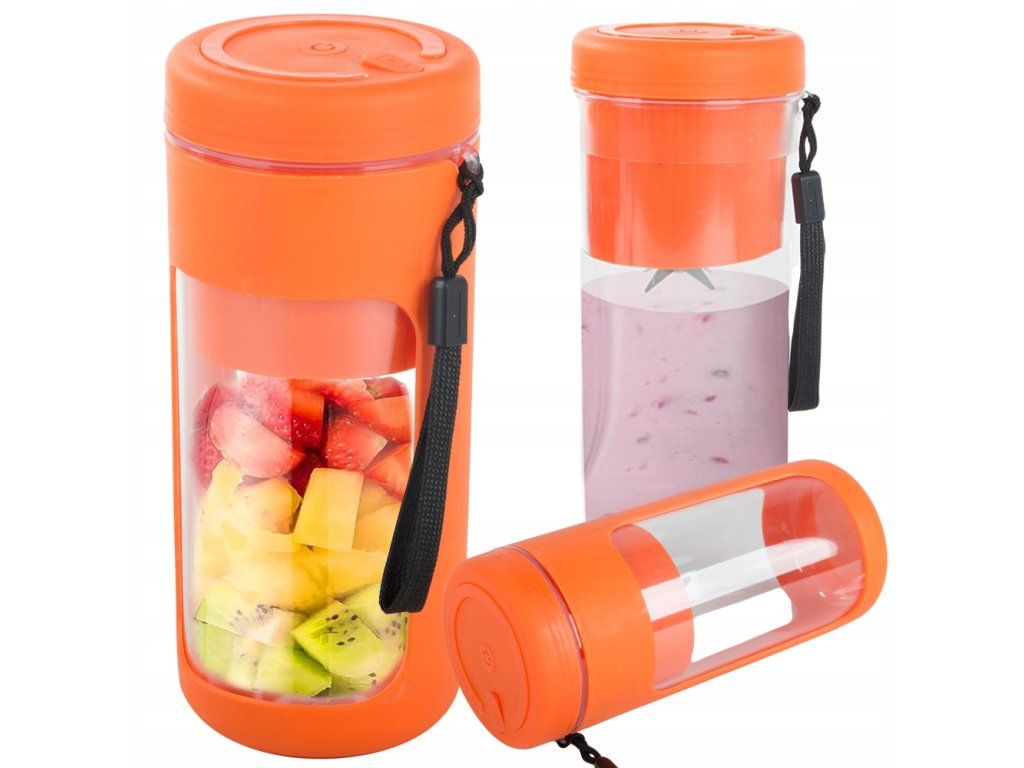 Přenosný bezdrátový USB mixér na smoothie, drtič ledu, oranžový s poutkem