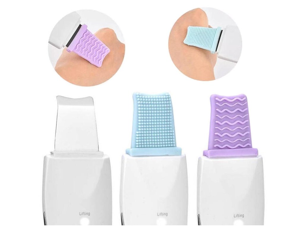 Sada obsahuje dva silikonové nástavce určené pro sonické a hloubkové čištění pleti. Připravují pokožku na kavitační peeling.