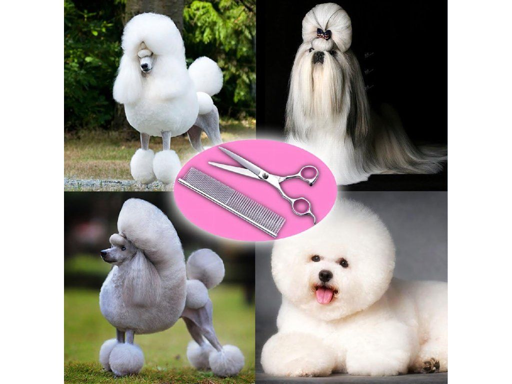 Profesionální sada na stříhání psů a koček – rovné nůžky ✂️, zakřivené , na vyřezávání ♂️, hřeben a elegantní pouzdro .