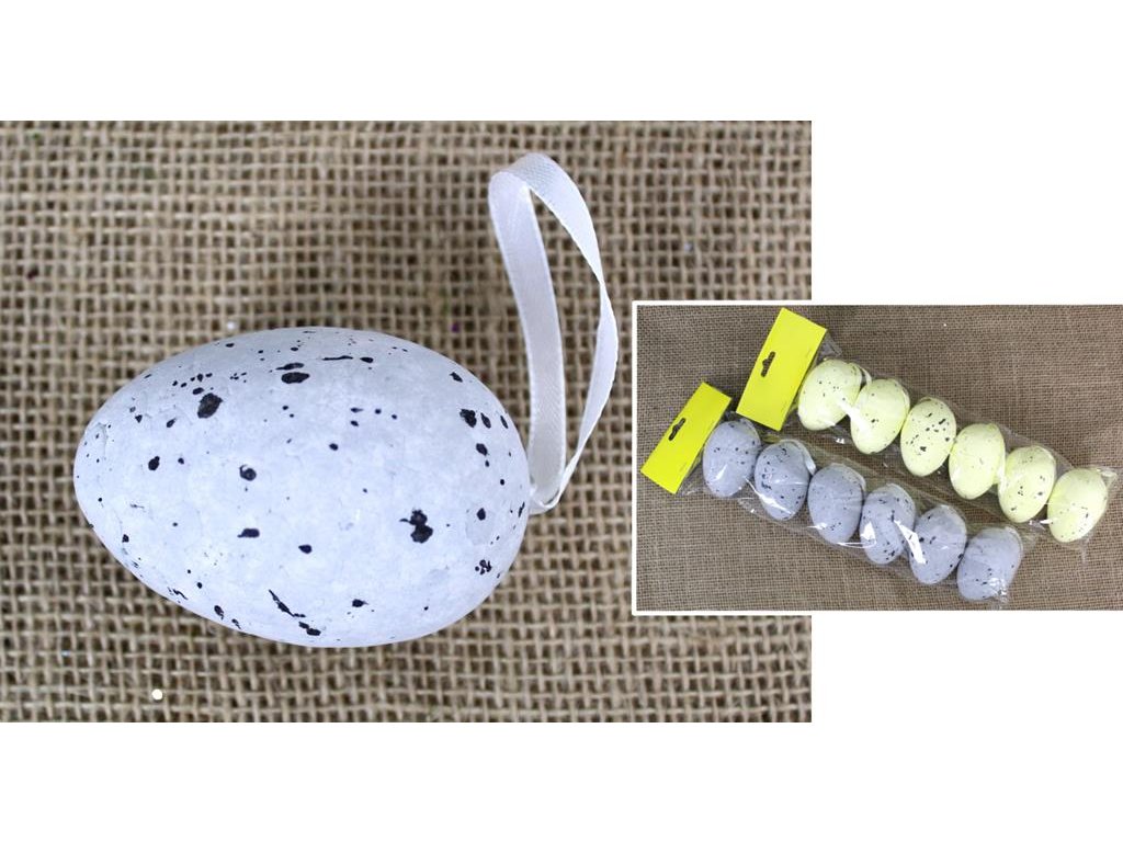 Skvrnitá polystyrénová vajíčka s přívěskem, sada 6 ks, mix barev