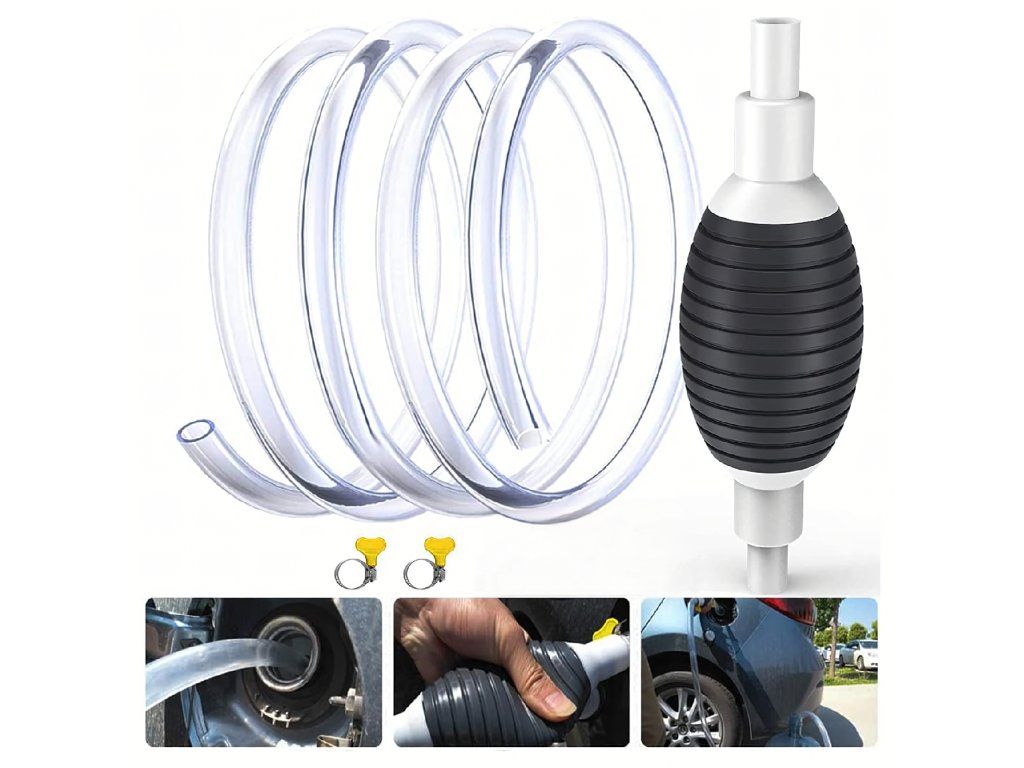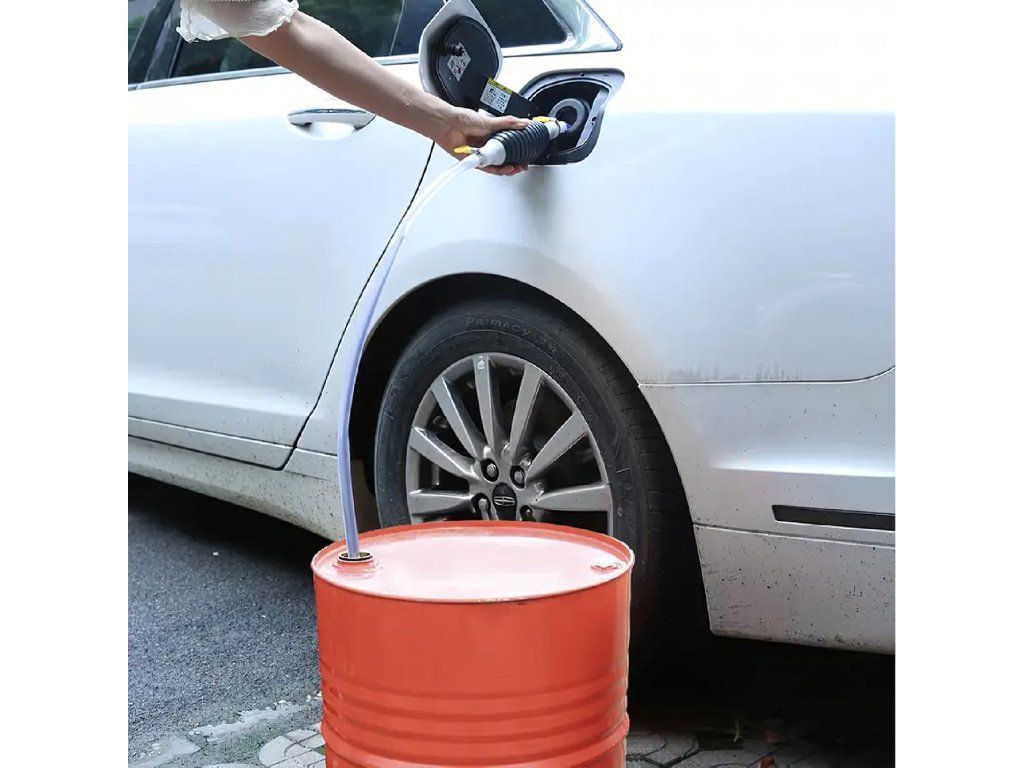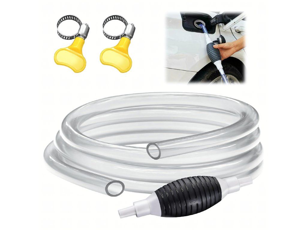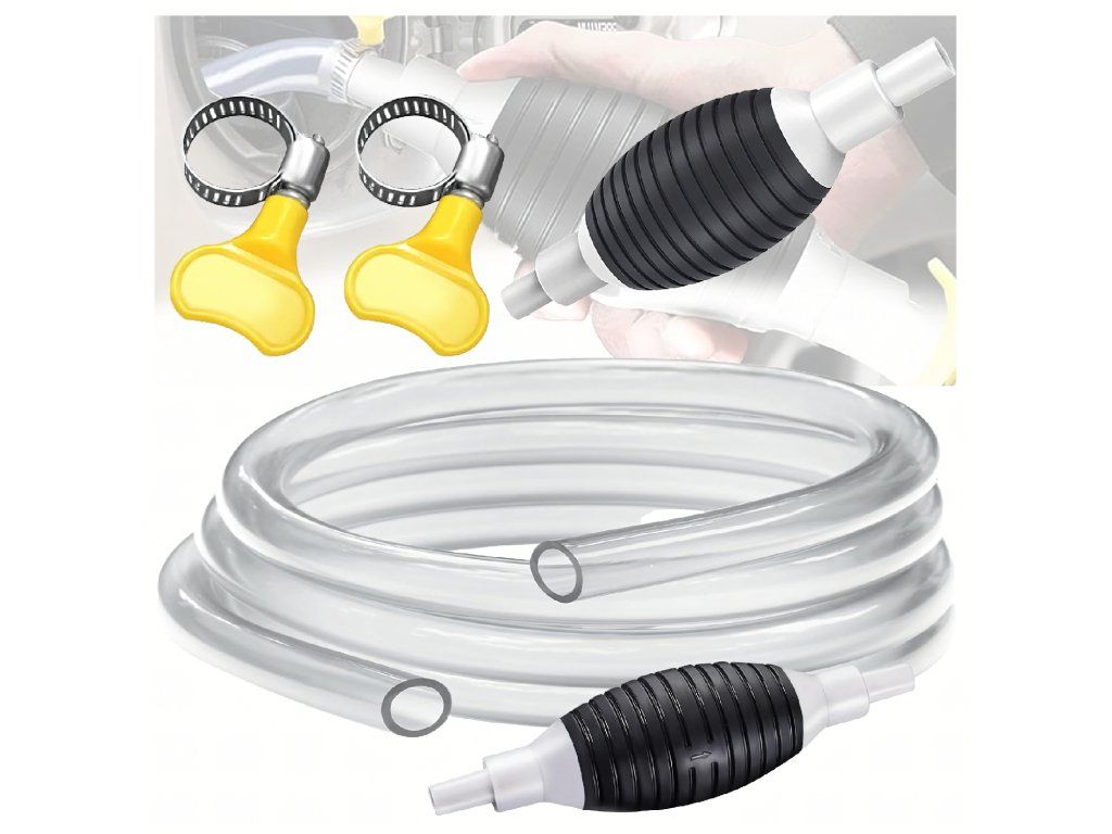 Ruční pumpička ve tvaru hrušky na odsávání paliva, oleje, ropy a kapalin – pumpa + hadice