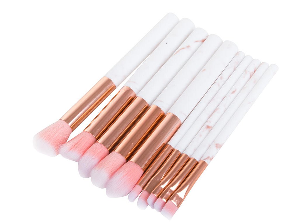 Sada 10 kosmetických štětců na make-up - vzor mramor