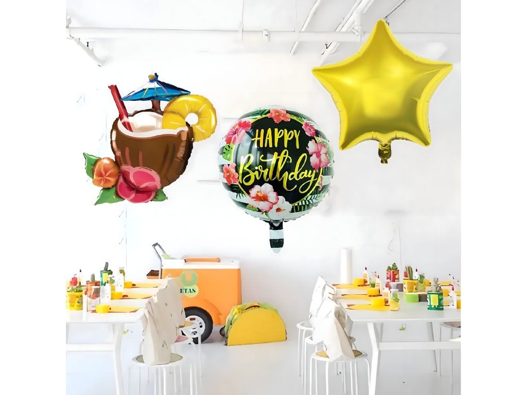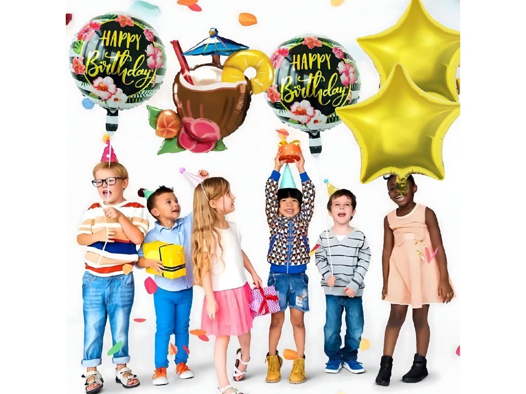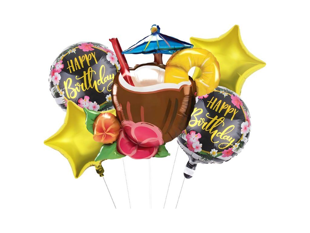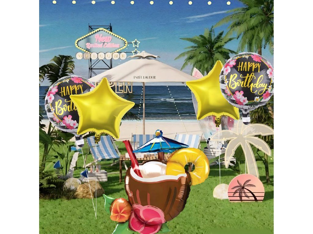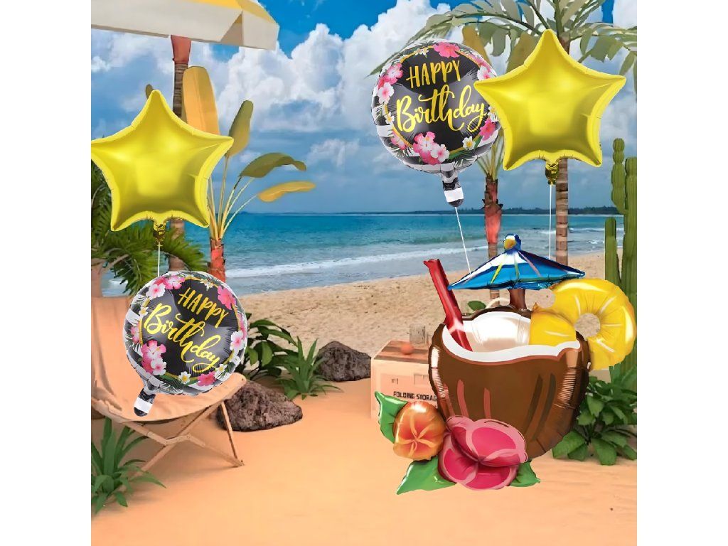 Přesuňte své narozeniny na Havaj! Objednejte si sadu balónků ALOHA 5 ks a během chvilky vytvořte tropickou atmosféru s velkým drinkem a zlatými hvězdičkami.✨