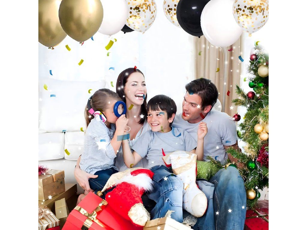 ✨ Elegantní barevné provedení – černá + zlatá + konfety = oslavový lesk a styl.