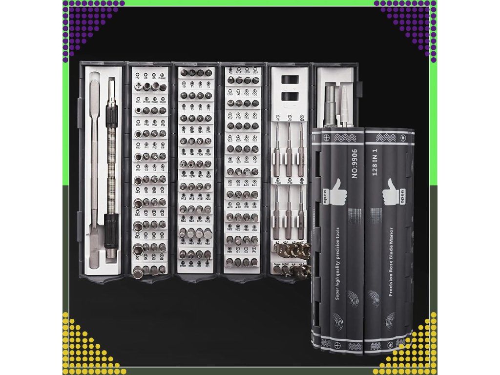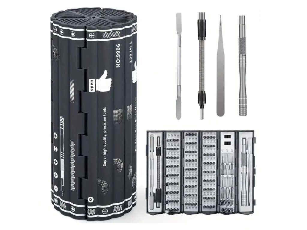 Sada magnetických klíčů a přesných šroubováků 128 v 1 je univerzální nástroj, který se ideálně hodí jak do profesionální dílny, tak i pro domácí opravy.