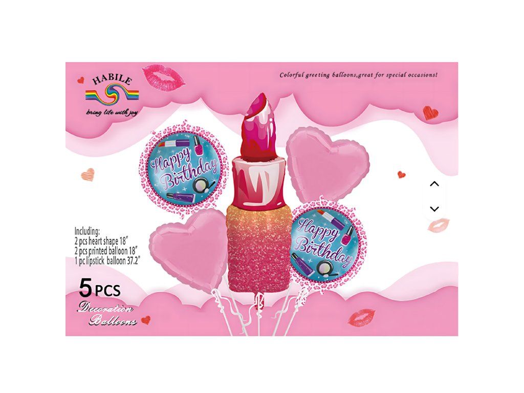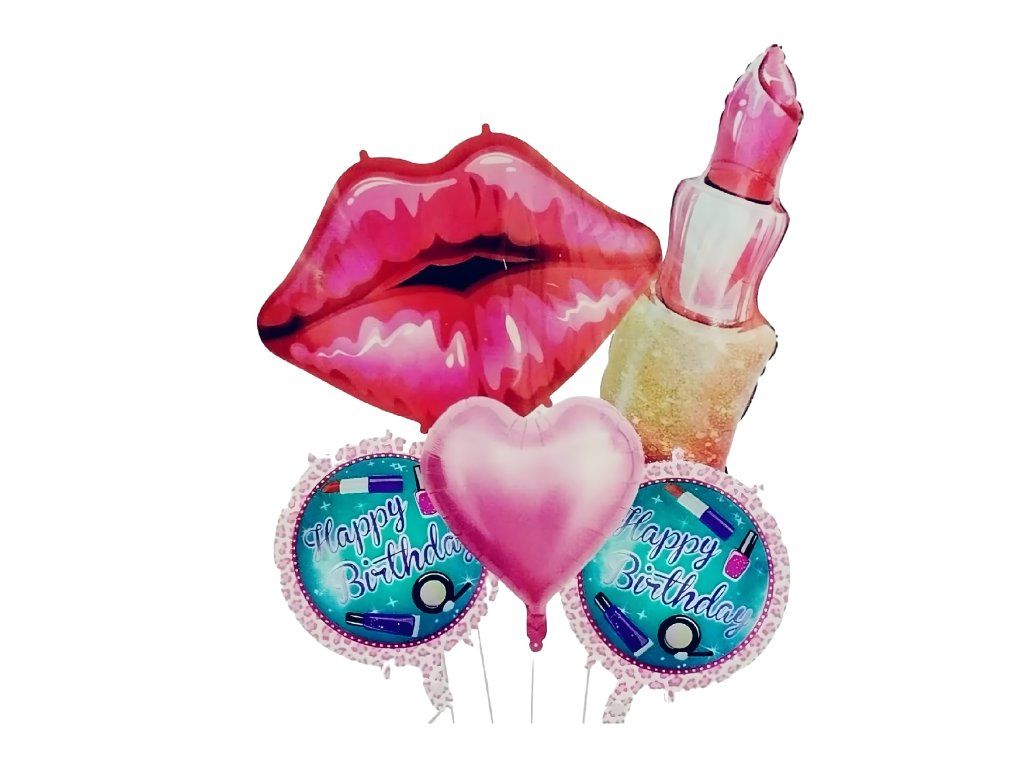 Sada narozeninových balónků pro dívky – rtěnka, ústa, „Happy Birthday“, 5 ks