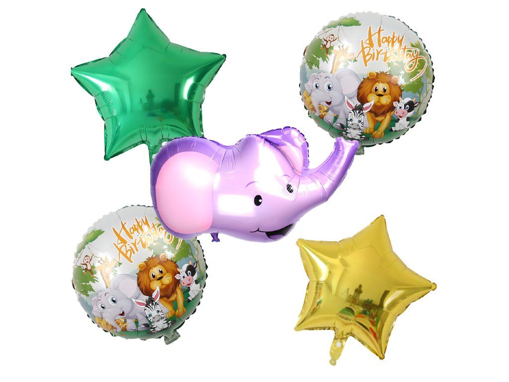 Sada narozeninových balónků Slon Zvířata na narozeniny a oslavy 5 ks