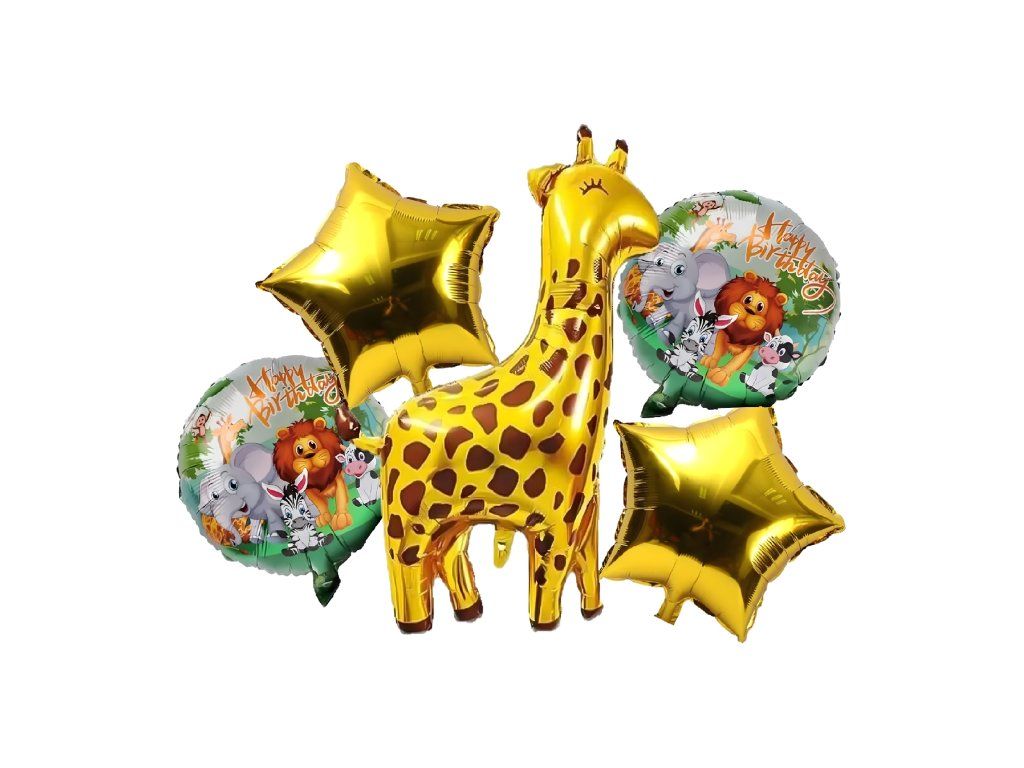 Sada narozeninových balónků Žirafa – zvířátka na narozeniny a oslavy, 5 ks