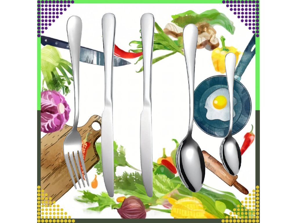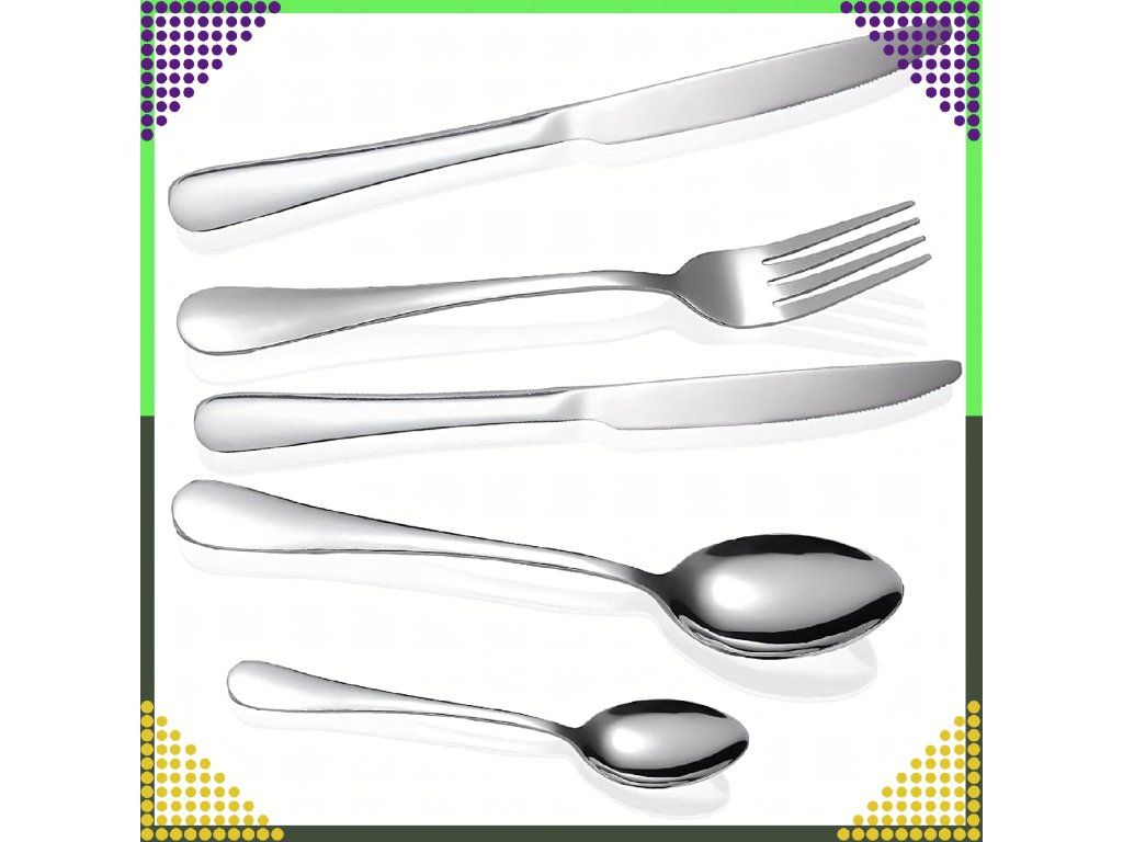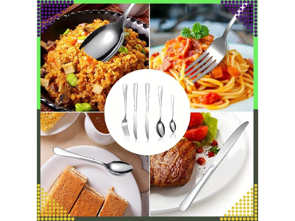 Naše příbory jsou vysoce kvalitní 5dílná sada obsahující lžíci, vidličku, nože a lžičky, které jsou vhodné pro každodenní použití.