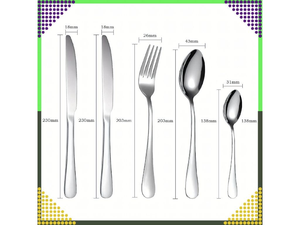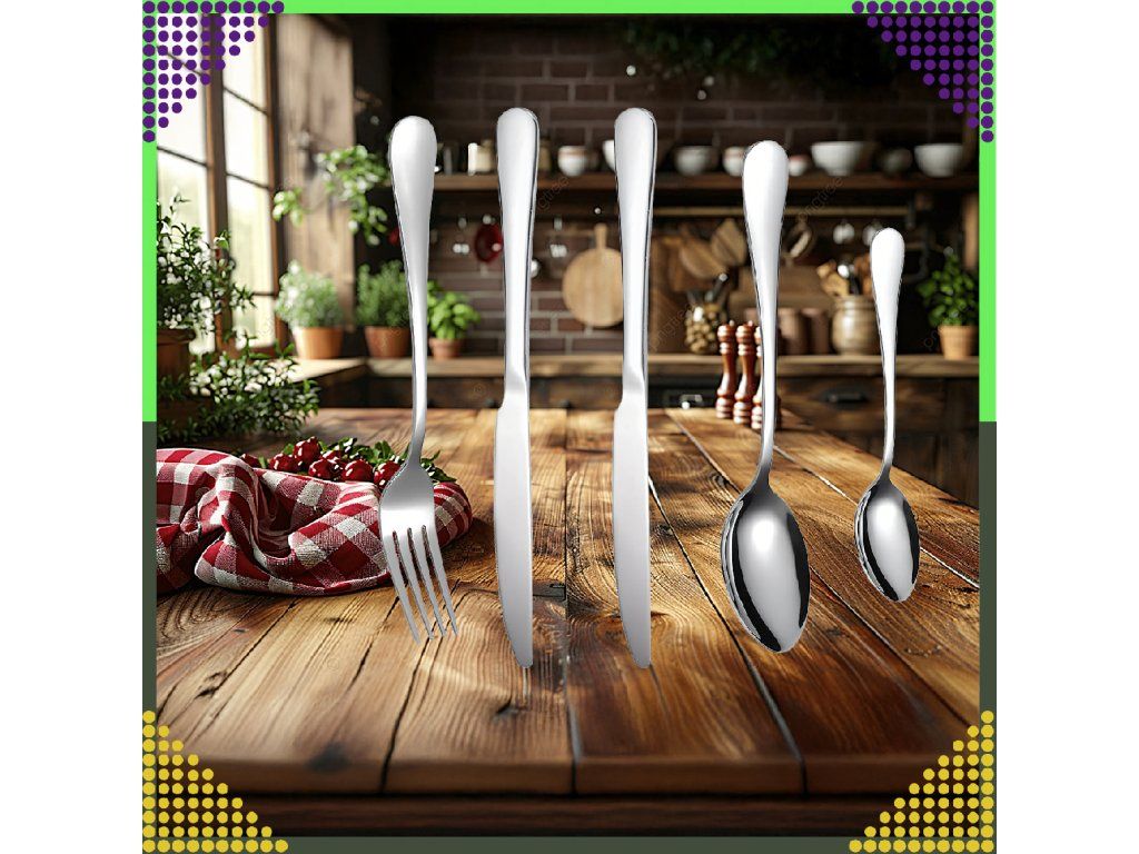 ✔️ 2 x stolní nůž ✔️ 1 x polévková lžíce ✔️ 1 x čajová lžička ✔️ 1 x vidlička