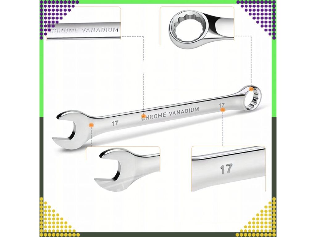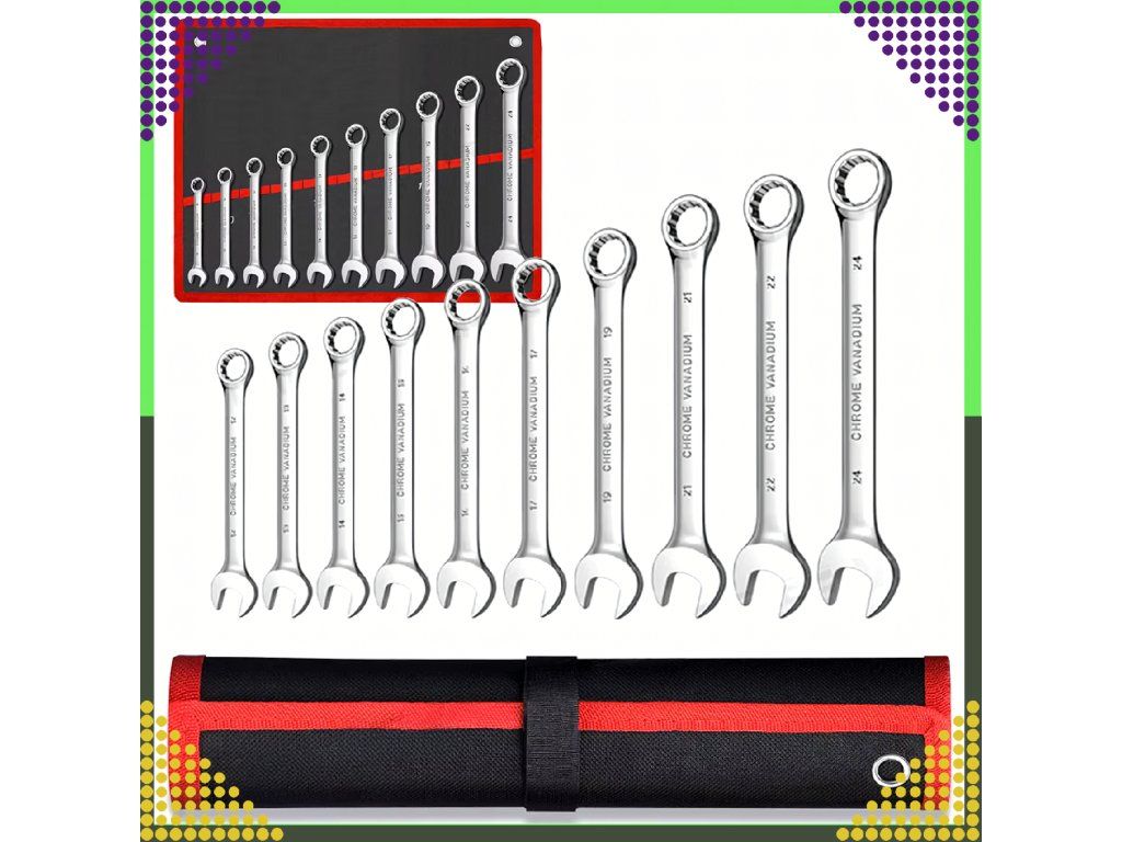 ✔️ Velikosti klíčů: 8 mm, 10 mm, 12 mm, 13 mm, 14 mm, 15 mm, 17 mm, 19 mm, 22 mm, 24 mm.