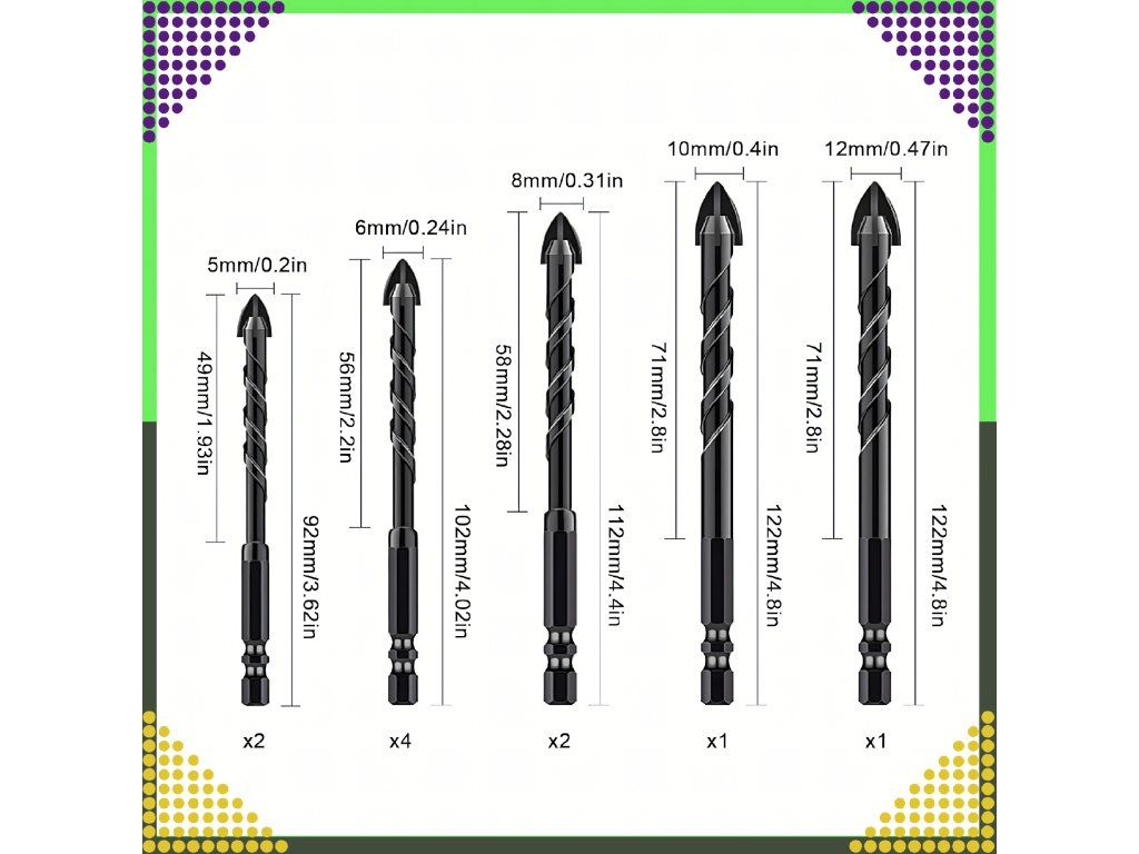 ️SADA UNIVERZÁLNÍCH VRTÁKŮ DO KAMENE, SKLA, OBKLADŮ A DŘEVA, 10 KS, 5–12 MM️