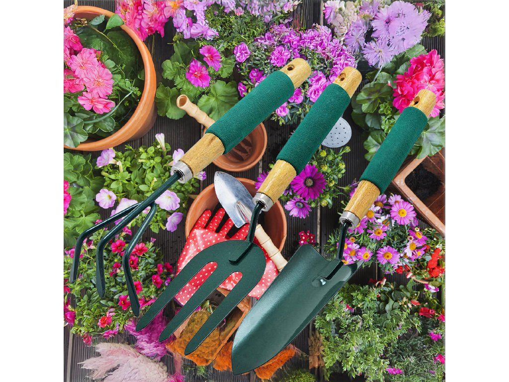 ✔️ Sada 3 nástrojů – lopatka, vidle, motyka – kompletní sada nástrojů pro všechny základní zahradní práce.