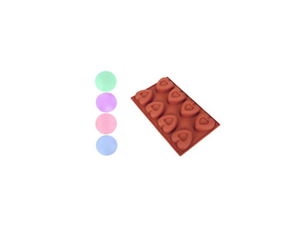 Silikonová forma na pečení 8 sušenek, muffinek ve tvaru srdce 29x17,5x3 cm, mix barev