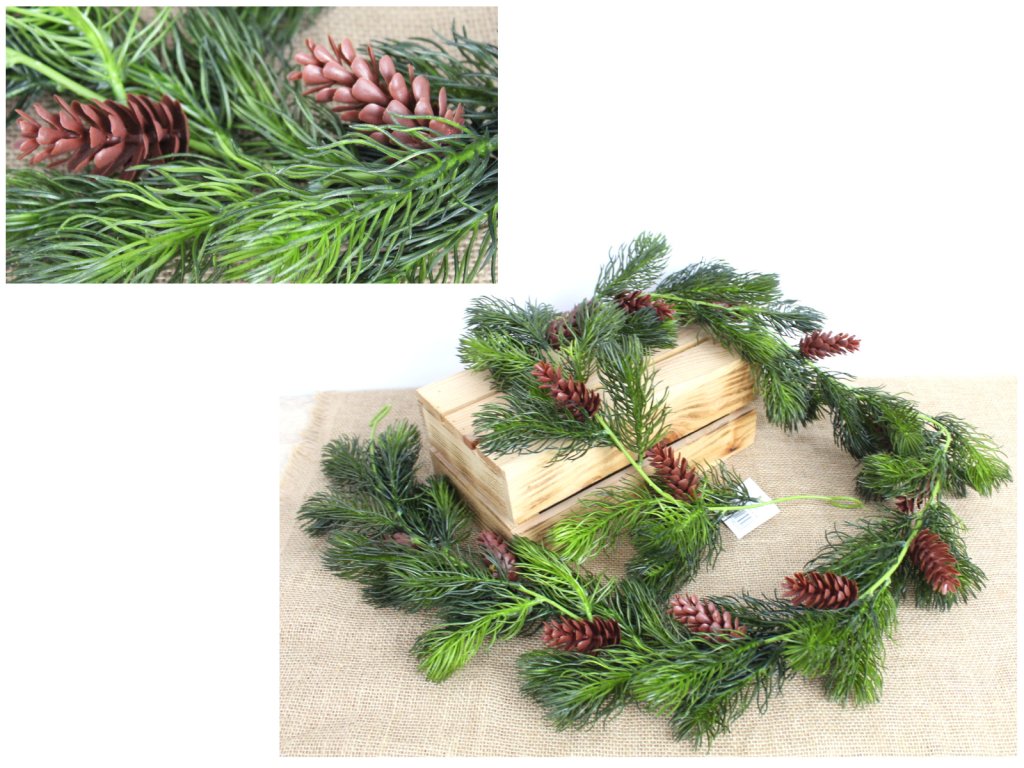 Silikonová girlanda SOSNA s šiškami 170 cm tmavě zelená