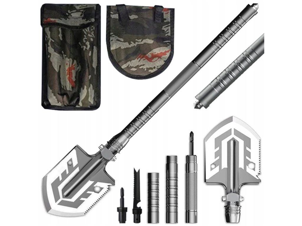 Multifunkční lopata, ideální pro všechny outdoorové aktivity a nouzové situace. Je to nepostradatelný nástroj pro přežití, který se osvědčí v obtížných terénních podmínkách