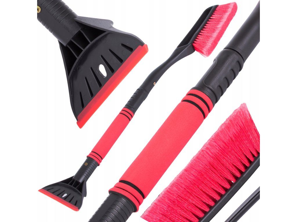 Škrabka na led se smetáčkem teleskopická 2 v 1, červená