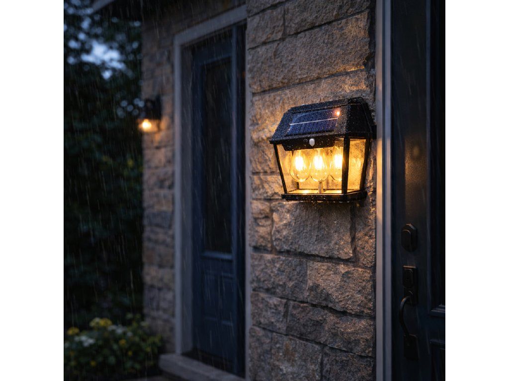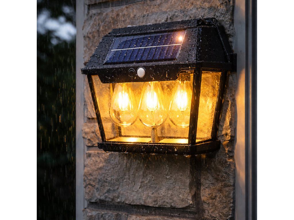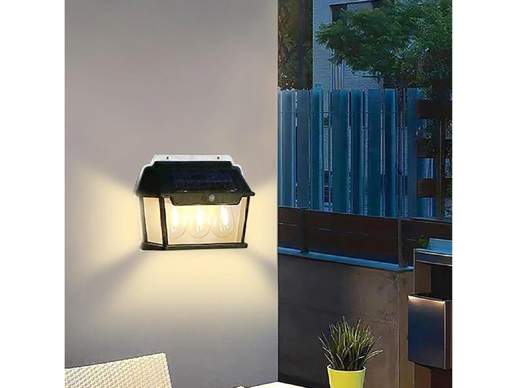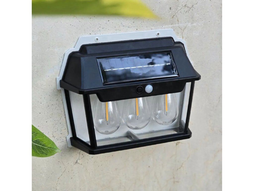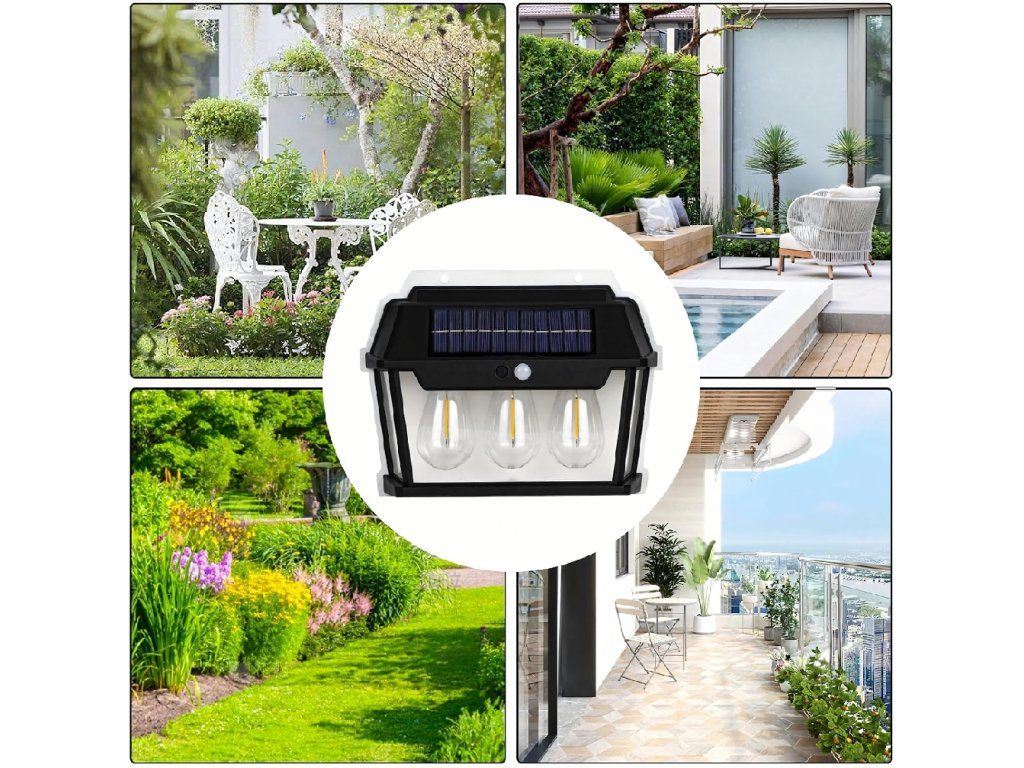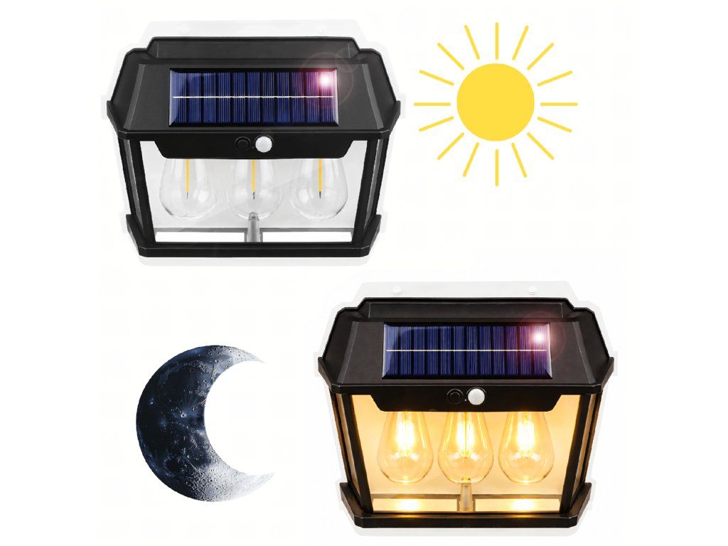 Solární LED trojitá zahradní nástěnná lampa s pohybovým senzorem
