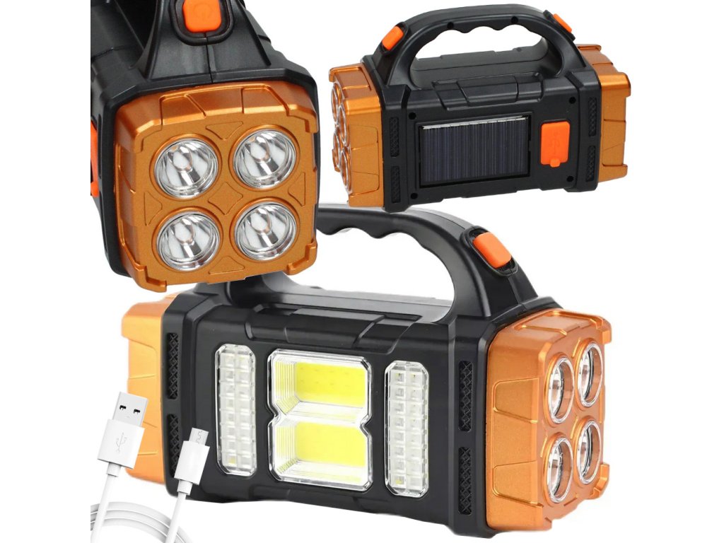 SOLÁRNÍ SVÍTILNA PŘENOSNÁ DOBÍJECÍ LED COB POWERBANK REFLEKTOR